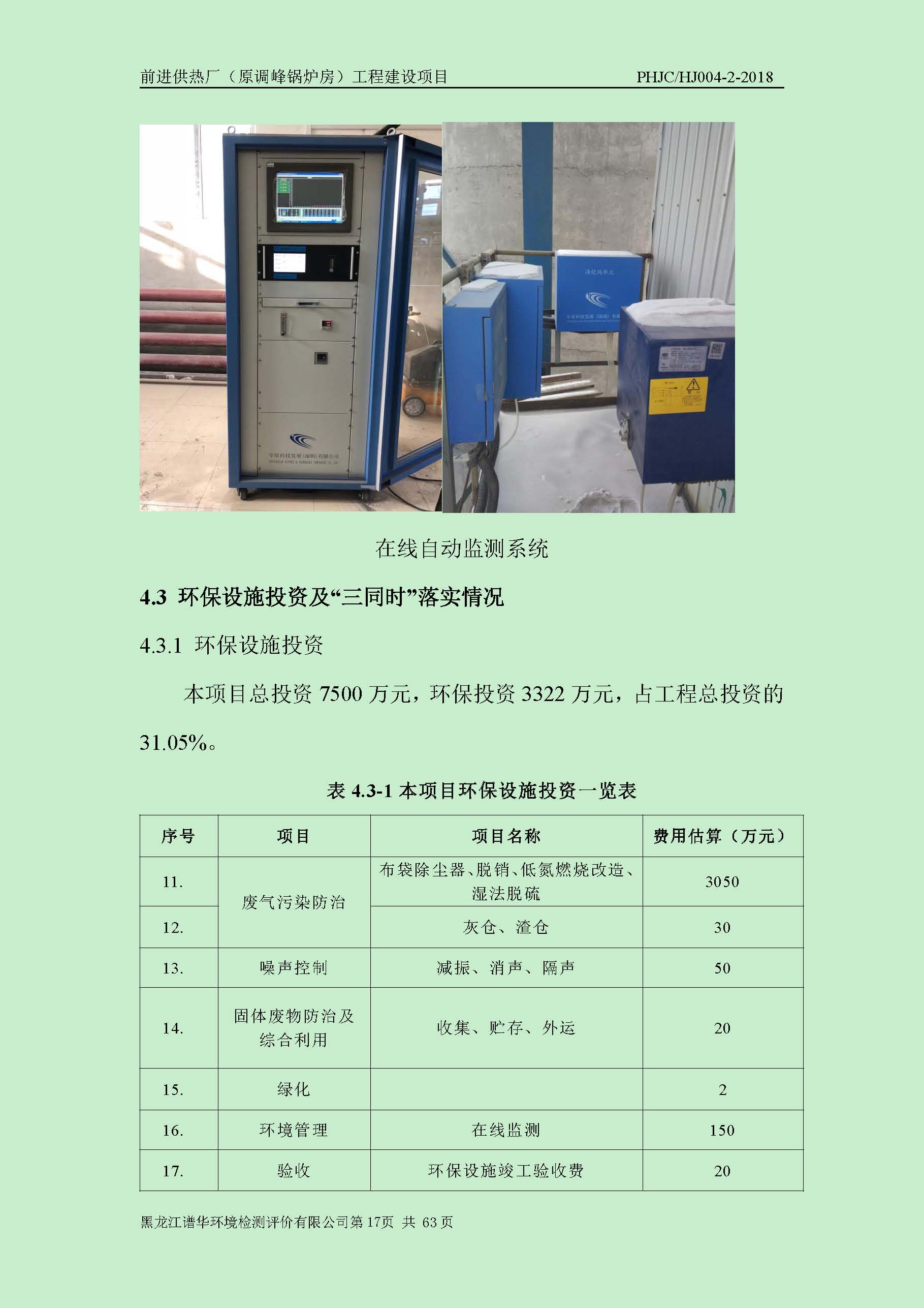 前进供热厂(原调峰锅炉房)工程建设项目环境保护验收